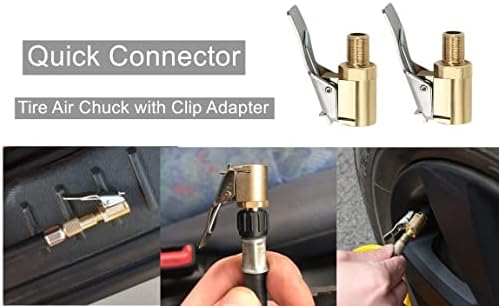 [ No Leakage & High Efficiency ]: Just press down locking clip on tire inflator, push or twist the tire air chuck into the valve stem until it is clamped, release the lock clip, no other tool is required, very practical and convenient. The tire inflator chuck gives you a great seal on the tire valve, it is great Air tire inflator nozzle Hose Adapter accessory.